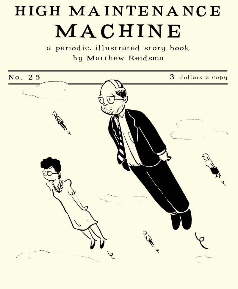 Issue 25 of High Maintenance Machine, a periodic, illustrated story book by Matthew Reidsma. Featuring the story "Driven by Faith" about evangelical Christianity, the rapture, and driver's education.